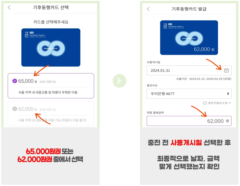 ✅ 62,000원: 대중교통 무제한 이용(따릉이 자전거는 불포함)