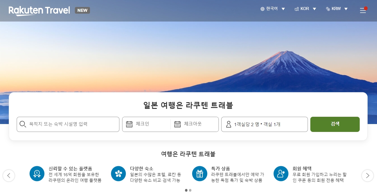 '라쿠텐 트래블'은 한국어 서비스도 지원하면서