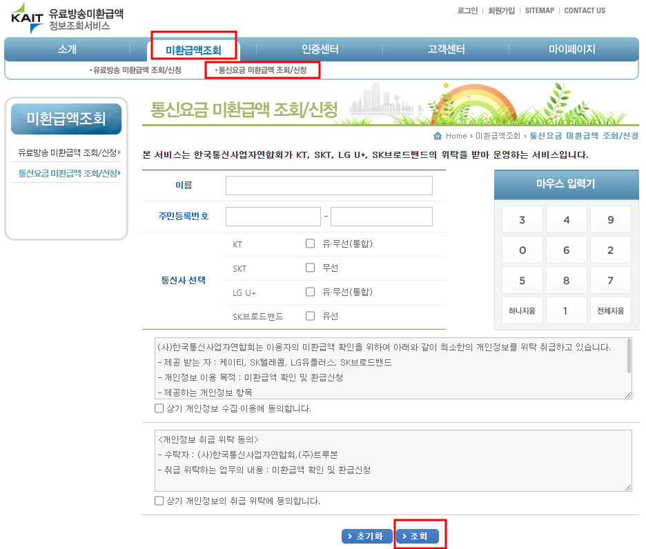 1. 통신요금 환급금 조회 및 신청