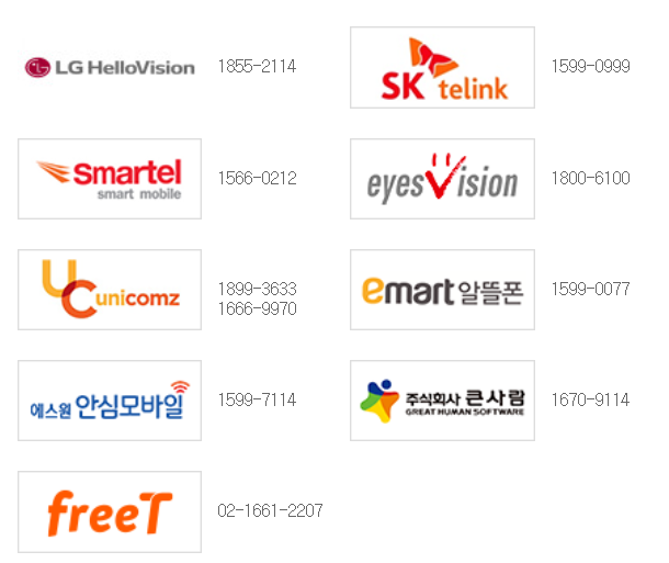 알뜰폰 사업자별 고객센터