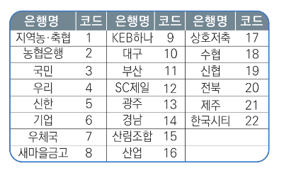 전화신청 시 꼭 필요한 은행코드는 아래에서 확인하세요.